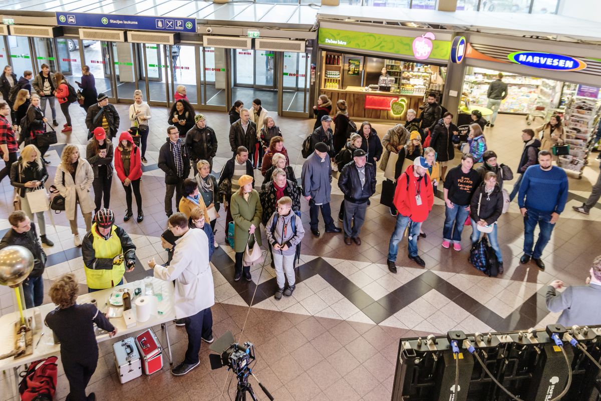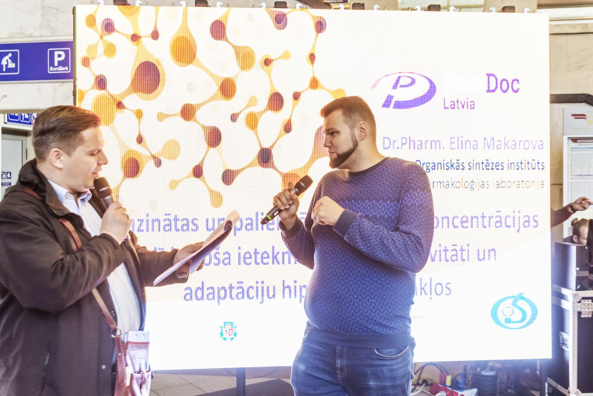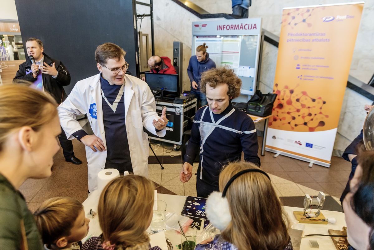 Jaunie zinātnieki iepazīstināja ar saviem pētījumiem, kuri tapuši PostDoc Latvia programmas ietvaros. Pasākuma apmeklētāji varēja piedalīties arī dažādos eksperimentos: uzlādēt sevi ar elektrību, vērot levitējošus un krītošus magnētus, pagatavot silikona tārpus.