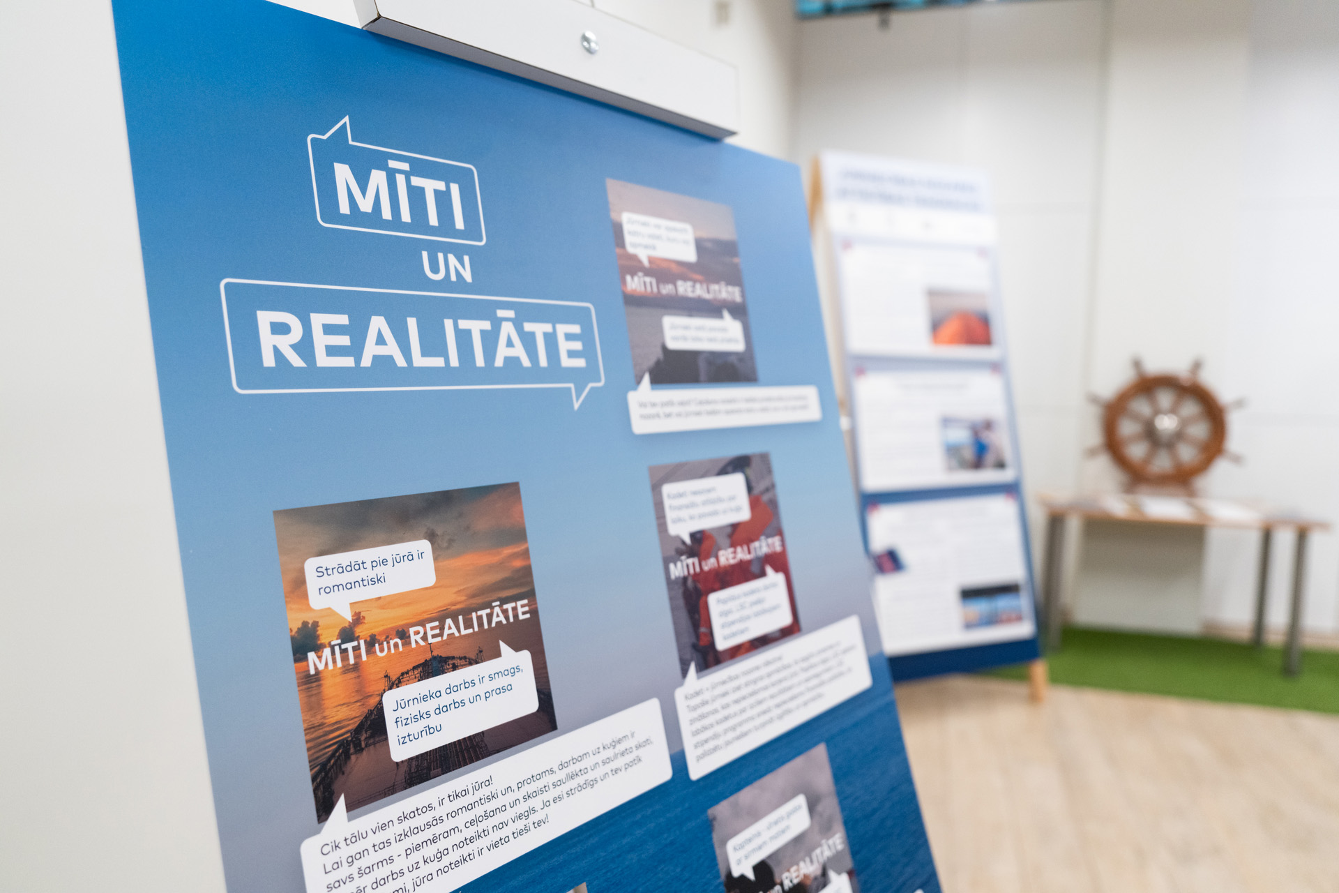 Dati liecina, ka pasaules tirdzniecības flotē šobrīd trūkst vismaz 15 000 jūrnieku – profesija ir pieprasīta, labi atalgota un paver durvis uz pasaules atklāšanu. Izstādes apmeklētājiem, noskenējot QR kodu ir iespēja uzzināt vairāk par tādām jūrniecības jomas profesijām kā kuģa vadītājs, kapteinis, stūrmanis, kuģa mehāniķis, kuģa elektromehāniķis, loģistikas speciālists, turklāt visas šis profesijas ir iespējams apgūt tepat, Latvijā – RTU struktūrvienībās Rīgā un Liepājā. Tāpat ar QR koda palīdzību ikviens izstādes apmeklētājam ir iespēja pārbaudīt savu atbilstību darbam jūrniecības specialitātēs un noteikt sev piemērotāko attīstības virzienu.