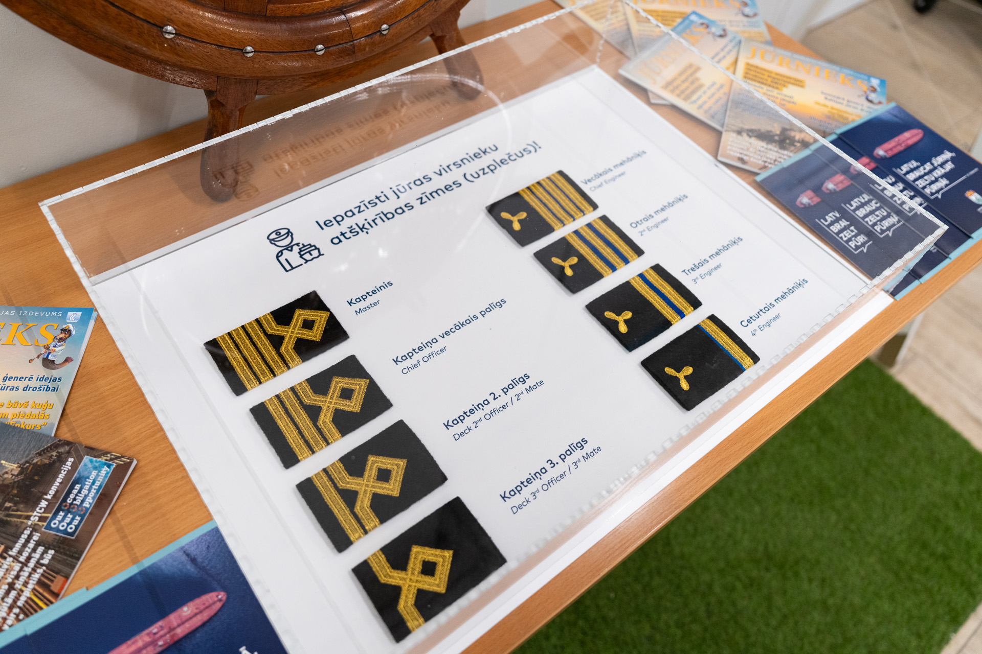 Izstādē ir iespēja apskatīt jūras virsnieku uzplečus un darba apģērbu, kas atspoguļo jūrnieku hierarhiju, atbildību un tradīcijas. Informatīvie materiāli ļauj atklāt aktuālās pārmaiņas nozarē, ko nodrošina datu digitalizācija, automatizācija un ilgtspējīga attīstība, kas iet roku roka ar pasaules attīstības tendencēm. Savukārt ar vizualizāciju palīdzību izstādes apmeklētāji izzinās pārsteidzošus faktus par kuģiem un jūrniecības nozari kopumā.