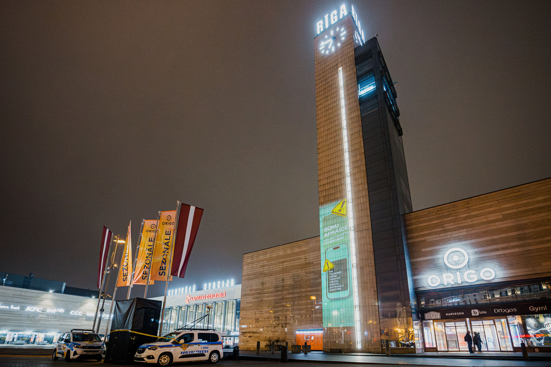 Ar gaismas objektu uz Stacijas pulksteņa torņa Iekšlietu ministrija un Valsts ugunsdzēsības un glābšanas dienests uzsāk kampaņu “Šūnu apraide – esi informēts un rīkojies!”