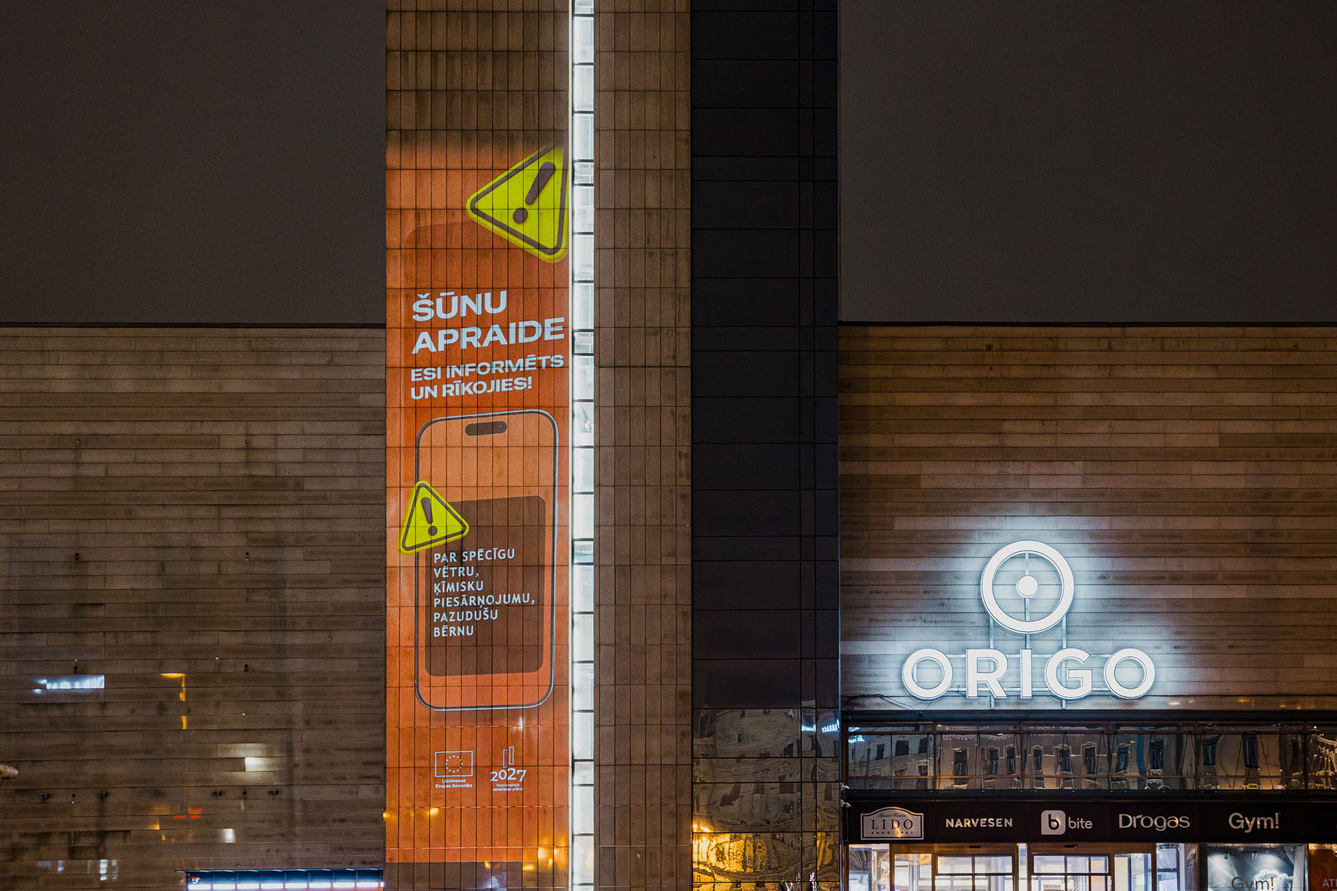 Lai iedzīvotāji apdraudējumos varētu saņemt operatīvu informāciju par to, kas noticis, notiks un kā rīkoties, šogad Latvijā ieviesta šūnu apraides sistēma. No 12. novembra Iekšlietu ministrija kopā ar Valsts ugunsdzēsības un glābšanas dienestu (VUGD) uzsāk sabiedrības informēšanas kampaņu “Šūnu apraide – esi informēts un rīkojies!”, kuras laikā skaidros, kas ir šūnu apraide, kā tā darbojas un kā skars ikvienu Latvijas iedzīvotāju. Par to, ka kritiskā situācijā, saņemot šūnu apraides paziņojumu, ir jārīkojas nekavējoties, Rīgā atgādinās arī īpašs gaismas objekts uz Stacijas pulksteņa torņa pie tirdzniecības centra “Origo”.