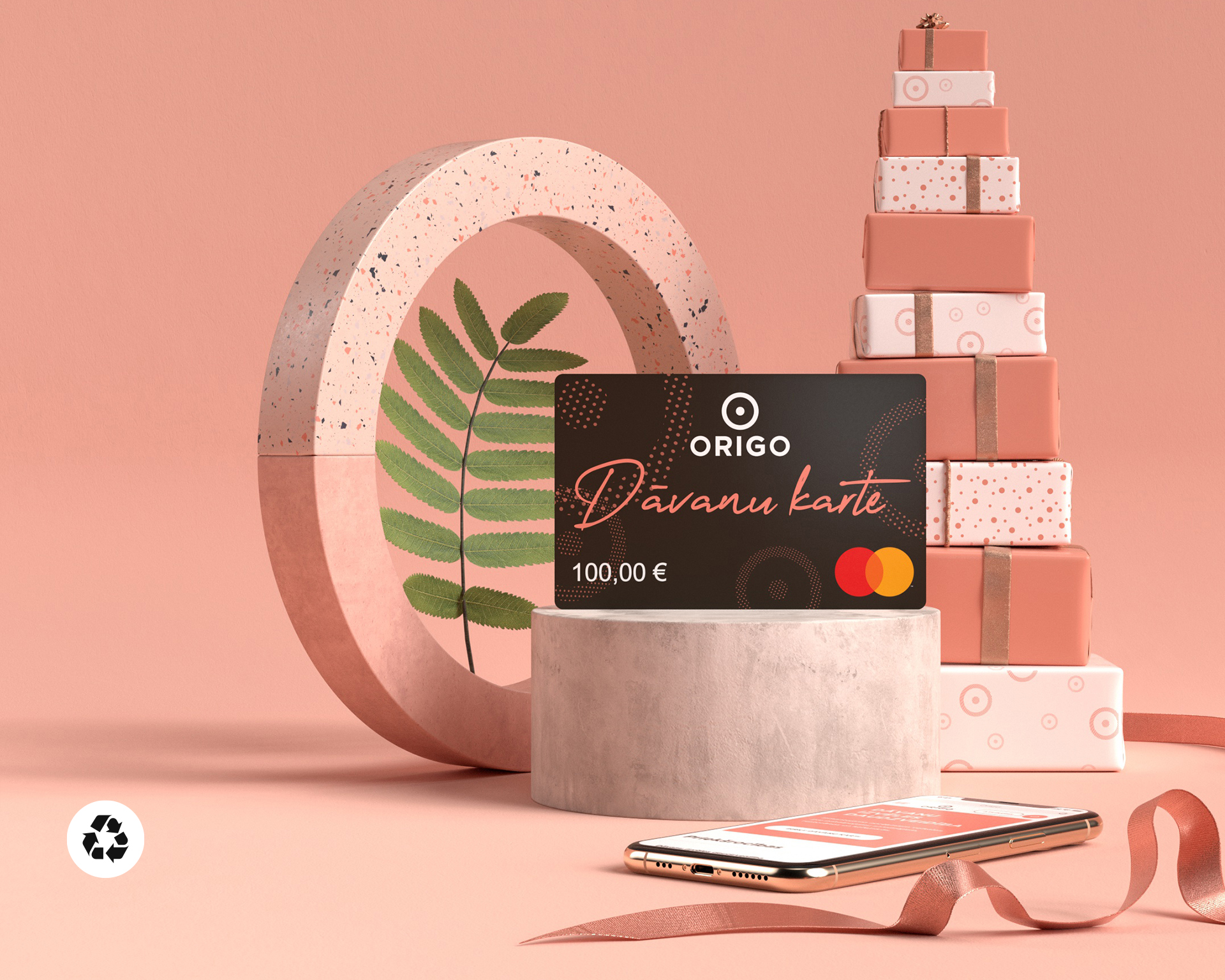 Mums rūp jūsu vēlmes un rūp arī daba! Vai zinājāt, ka Origo dāvanu karte ir pirmā elektroniskā dāvanu karte Latvijā, kas ražota no pārstrādātas plastmasas -PETG plastmasas -, kas dabā sadalās desmit reizes ātrāk nekā parastās PVC kartes?PETG karšu plastiku ražošanas un piegādes procesā izdalās par ~75% mazāk CO2 nekā parasto PVC karšu gadījumā.
