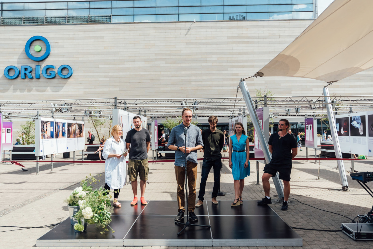 “”Linstow Center Management” sadarbībā ar tirdzniecības centru “Origo” ir izveidojis mākslai nepieciešamo publisko telpu – 450 kvadrātmetru plašu brīvdabas lielformāta fotogaleriju, kurā tiek atspoguļoti Latvijai nozīmīgi notikumi un atklātas izstādes, lai Stacijas laukumā tās spētu sasniegt plašāku auditoriju un kļūtu pieejamas ikvienam,” stāsta “Linstow Center Management” komercdirektore Evija Majevska, “Īpaši priecājamies par izstādi “Latvijas Dizaina gada balva 2018” un sadarbību ar konkursa organizatori Ingūnu Eleri, kas devusi unikālu iespēju apmeklētājiem tuvāk iepazīties ar Latvijas dizaina sasniegumiem.