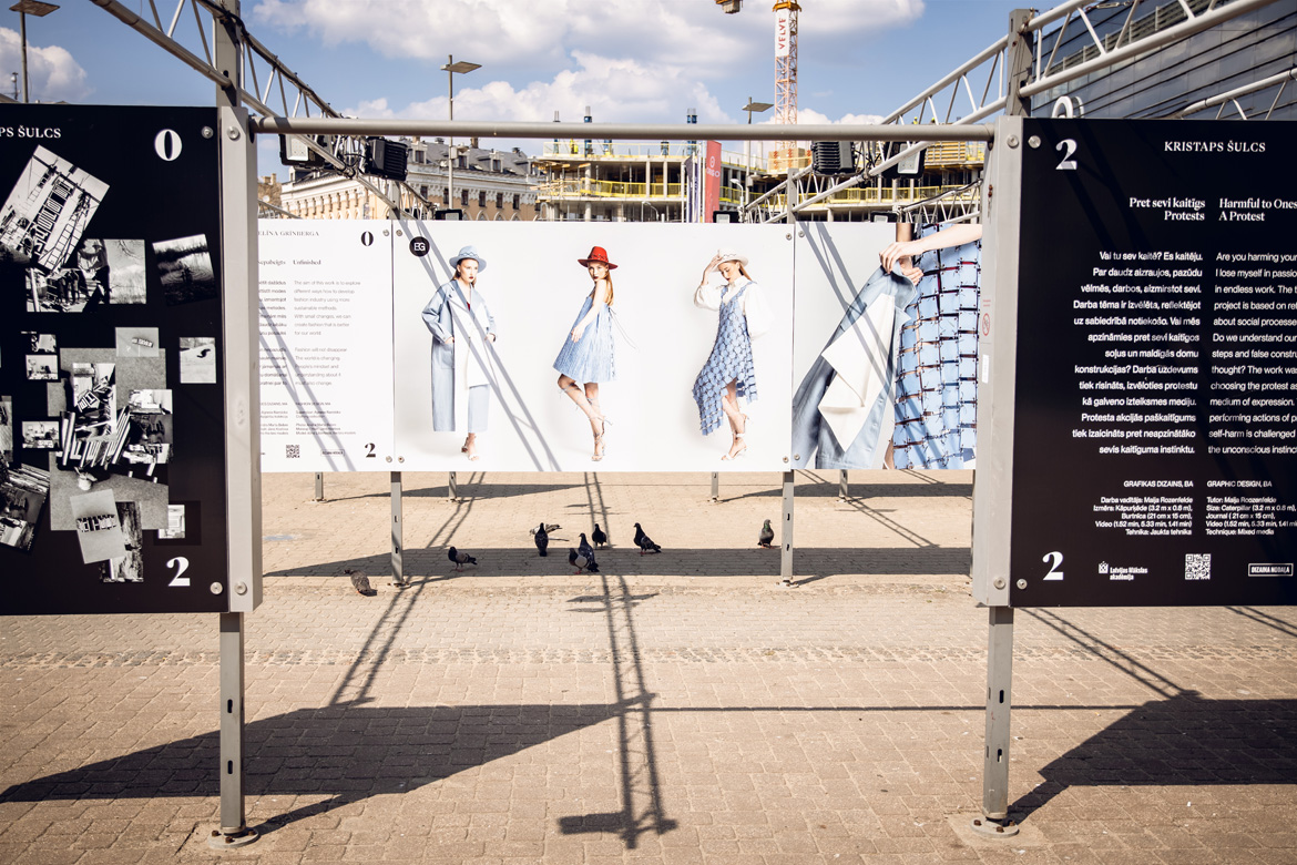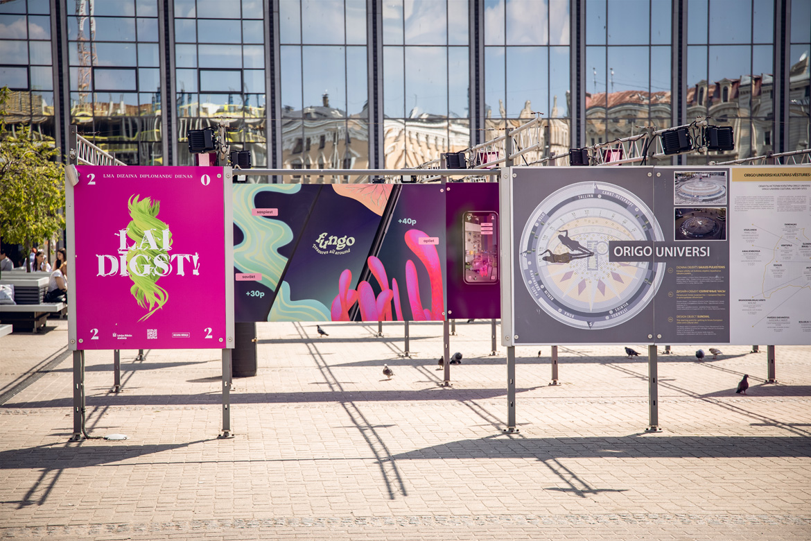 На площади рядом с Origo открыли выставку дипломных работ Отделения дизайна Латвийской академии художеств