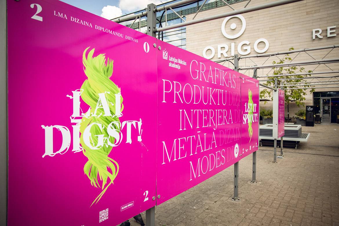 С понедельника, 20 июня, на площади около т/ц “Origo” открыта выставка работ студентов Отделения дизайна Латвийской академии художеств (ЛАХ), являющаяся частью Программы выставки дипломных работ ЛАХ “Пусть прорастает!”. Выставка дипломных работ устраивается как точка отсчета проделанному за время учебы и как передача свежих, творческих идей и их решений на оценку обществом.