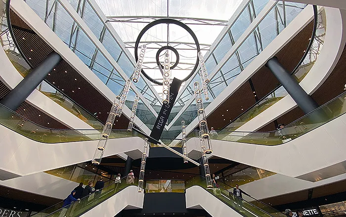 “В торговом центре используются самые современные возможности LED технологий – видеостены на фасаде и во внутренних помещениях торгового центра, которые в своей работе исходят из уменьшенного энергопотребления, минимизированного выделения тепла, а также сбалансированного, приятного для глаз посетителей освещения экрана, которое приспосабливается к интенсивности окружающего освещения.”